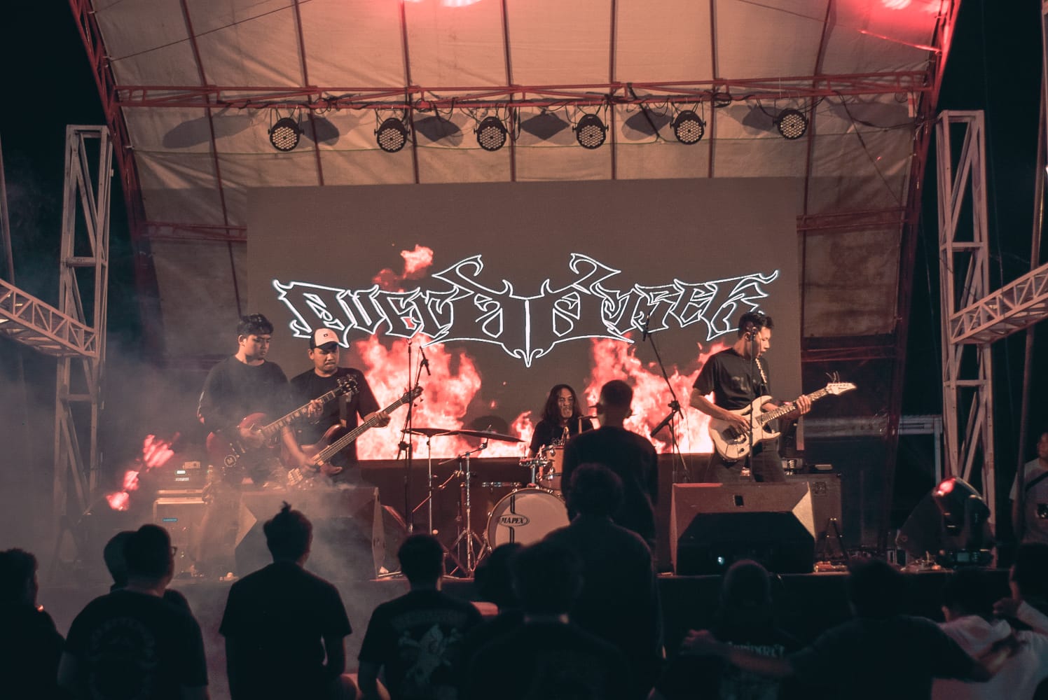 Q: Aamiin, asik nih berarti. Semua pasti gak sabar. Kemarin kalian sempat bermain di beberapa event. Menurut kalian bagaimana perkembangan skena permusikan khususnya permusikan metal dan indie di Bolaang Mongondow Bersatu?